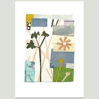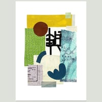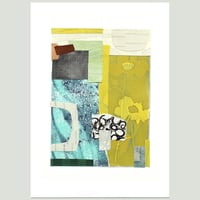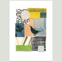 A series of small original collages, made up of a wide variety of screen printed, hand painted, hand made and ephermeral papers which I've collected and collated over the years. Cut and torn to create compositions of playful abstraction with a nod to nature, spring time and the occasional blackbird (wishfully thinking one might visit my tiny garden someday).